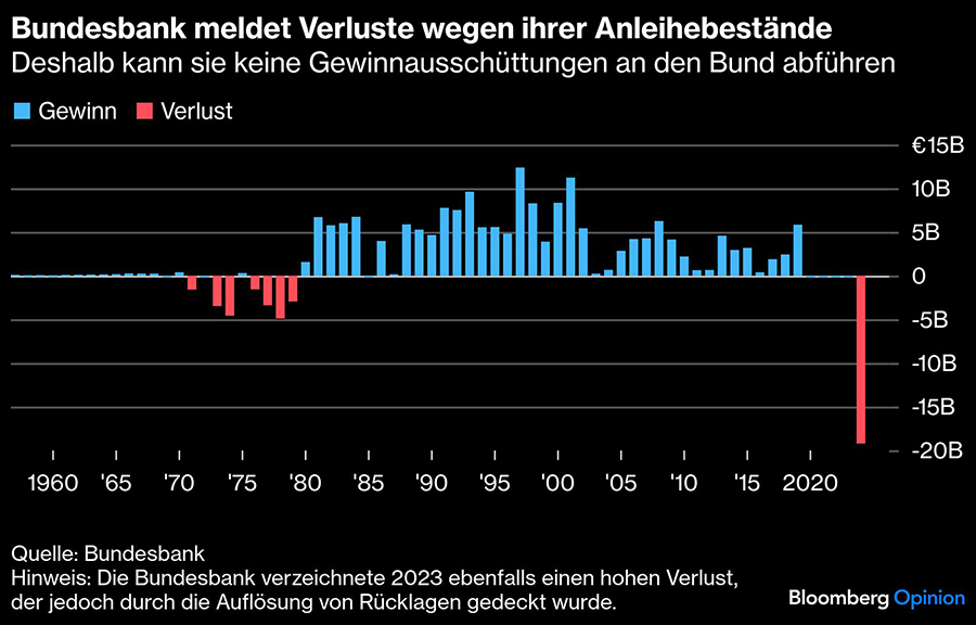 Aufgrund einer Zinsdifferenz zwischen diesen Vermögenswerten und den Zinsen auf Einlagen der Kreditinstitute meldete die Bundesbank in den vergangenen zwei Jahren jeweils Verluste von rund 20 Milliarden Euro. Gleichzeitig stieg dank der Neubewertung der Goldbestände das Nettoeigenkapital auf mehr als 250 Milliarden Euro, zuletzt gemessen im Februar 2025.