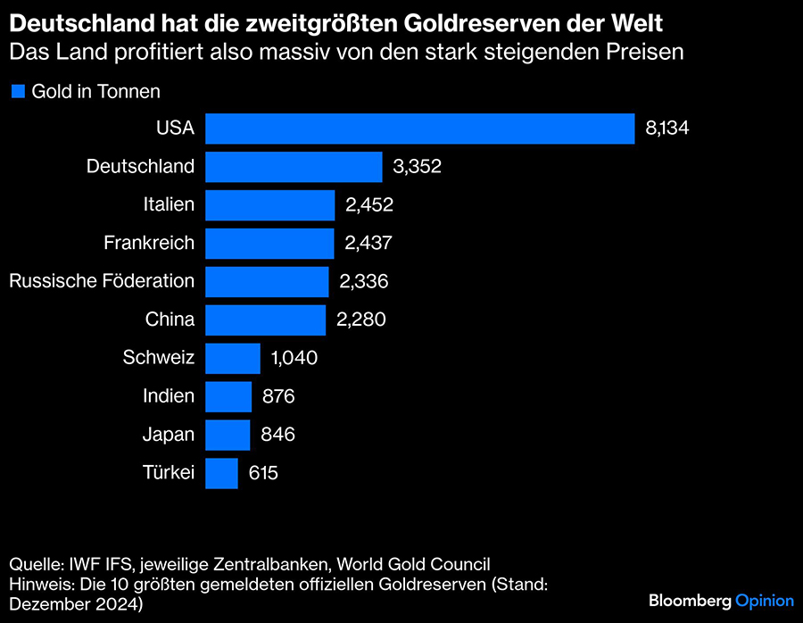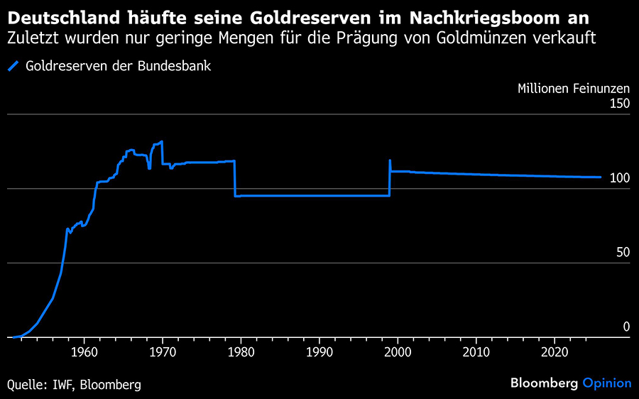 Dies ist keine Anlageberatung. Unklar ist, ob die Goldpreise ihren Höhepunkt erreicht haben oder weiter steigen. Zur Transparenz: Ich besitze selbst etwas Gold und wünschte rückblickend, es wäre mehr. Mir ist auch bewusst, dass der Vorschlag, die Bundesbank zum Verkauf von Gold zu bewegen, in einem Land mit Hyperinflationserfahrung in den 1920er Jahren nahezu als Ketzerei gilt.