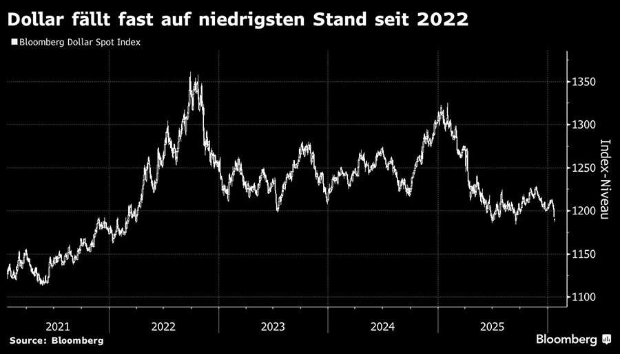 Der "Bloomberg"-Dollar-Spot-Index ist seit Anfang vorigen Jahres um mehr als neun Prozent gefallen. Risiken rund um die Unabhängigkeit der Federal Reserve und die Erwartung, dass der Nachfolger des Vorsitzenden Jerome Powell von Präsident Donald Trump dazu gedrängt wird, die Zinsen schnell zu senken, haben die US-Währung ebenso belastet wie ein wachsendes Haushaltsdefizit, Sorgen über fiskalische Zügellosigkeit und eine zunehmende politische Polarisierung.