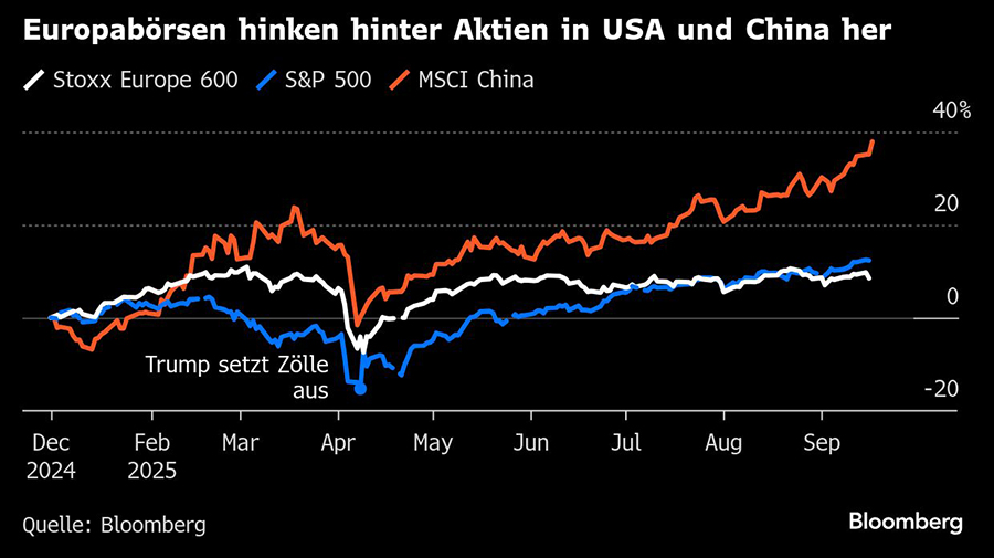 In den vergangenen Wochen verlor der Index jedoch wieder an Boden. Anleger setzten stärker auf US-Werte, gestützt von robustem Wachstum, der Aussicht auf Zinssenkungen durch die Federal Reserve und der anhaltenden Euphorie um künstliche Intelligenz. Der S&P 500 kletterte seit Jahresbeginn um zwölf Prozent auf Rekordhöhen, während der Stoxx 600 mit einem Plus von 8,6 Prozent unter seinem März-Hoch blieb.