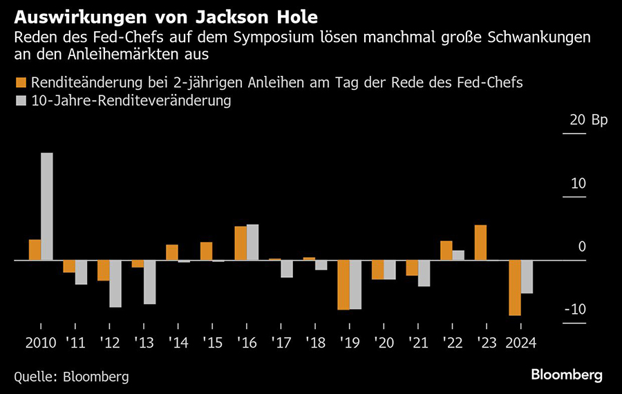 Die Finanzmärkte blicken nach Jackson Hole: Fed-Chef Jerome Powell könnte Ende der Woche den Kurs für künftige Zinssenkungen vorgeben. Anleihehändler setzen fest auf eine Lockerung – doch schwankende Daten zu Inflation und Arbeitsmarkt lassen Spielraum für Überraschungen.