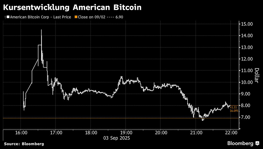 Die Börsennotierung von American Bitcoin erfolgte in weniger als einem Jahr. Das Unternehmen entstand aus der neu gegründeten Einheit American Data Centers, ins Leben gerufen von der kleinen Investmentbank Dominari, die ebenfalls Kontakte zur Trump-Familie pflegt. Anschließend erhielt die Firma Mining-Ausrüstung von Hut 8 im Austausch für eine Mehrheitsbeteiligung an dem neuen Unternehmen. (mb/Bloomberg)