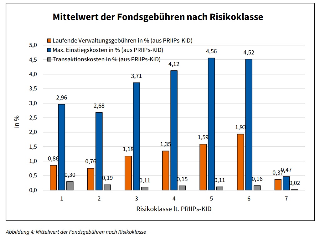 Die höheren Kosten bei den Aktienfonds hängen auch damit zusammen, dass sie tendenziell in einer höheren Risikoklasse eingestuft sind, deren Management in der Regel mit Mehrkosten einhergeht. Auch die Performance-Chancen sind bei den Aktienfonds in der Regel am besten. (eml)