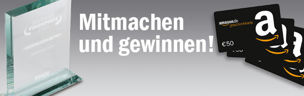 Als Dankeschön für Ihre Unterstützung verlosen wir unter allen Einsendern zehn Eintrittskarten für den FONDS professionell KONGRESS inklusive Galaabend sowie 10 Amazon.de-Gutscheine1 im Wert von je 50 Euro1.