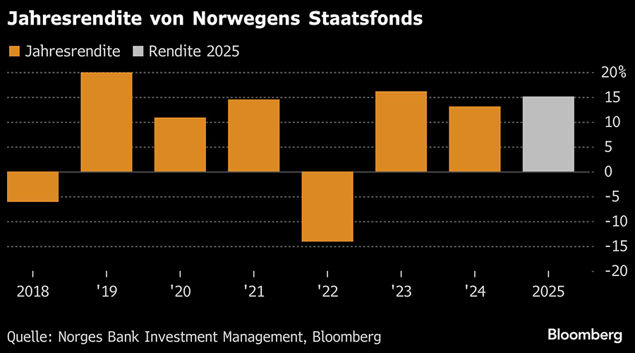Getragen von starken Kursgewinnen bei Technologie- und Finanzwerten verzeichnete der norwegische Staatsfonds im Vorjahr eine Rendite von mehr als 15 Prozent.